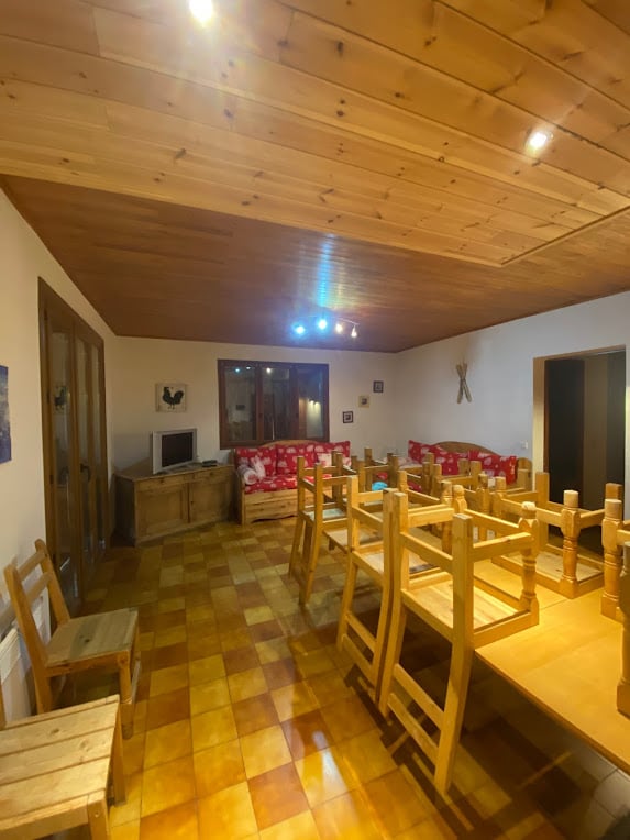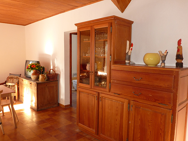 - coin cuisine entièrement équipé (4 plaques électriques, four pyrolyse, micro-onde, lave-vaisselle, machine à laver, réfrigérateur avec congélateur, appareil à raclette, service à fondue, grille pain, tout le nécessaire de cuisine) avec 2 tables et chaises + banc.