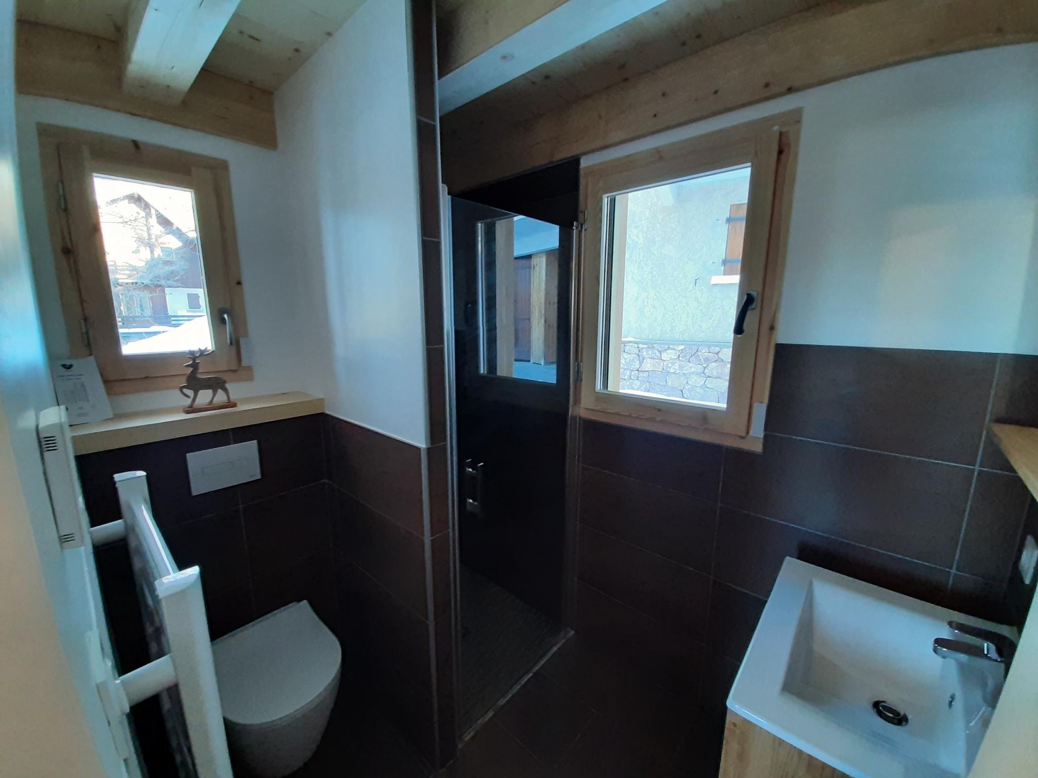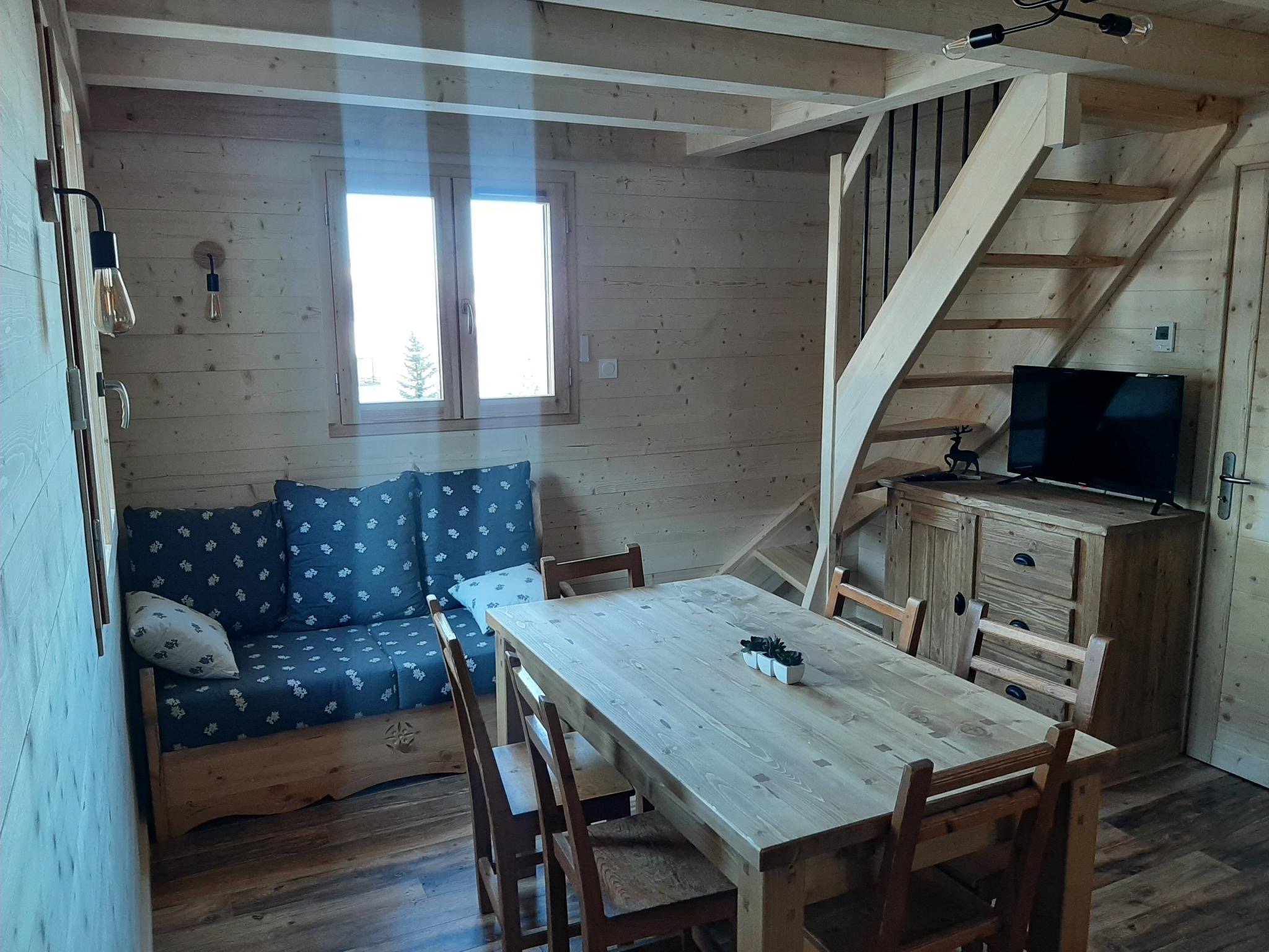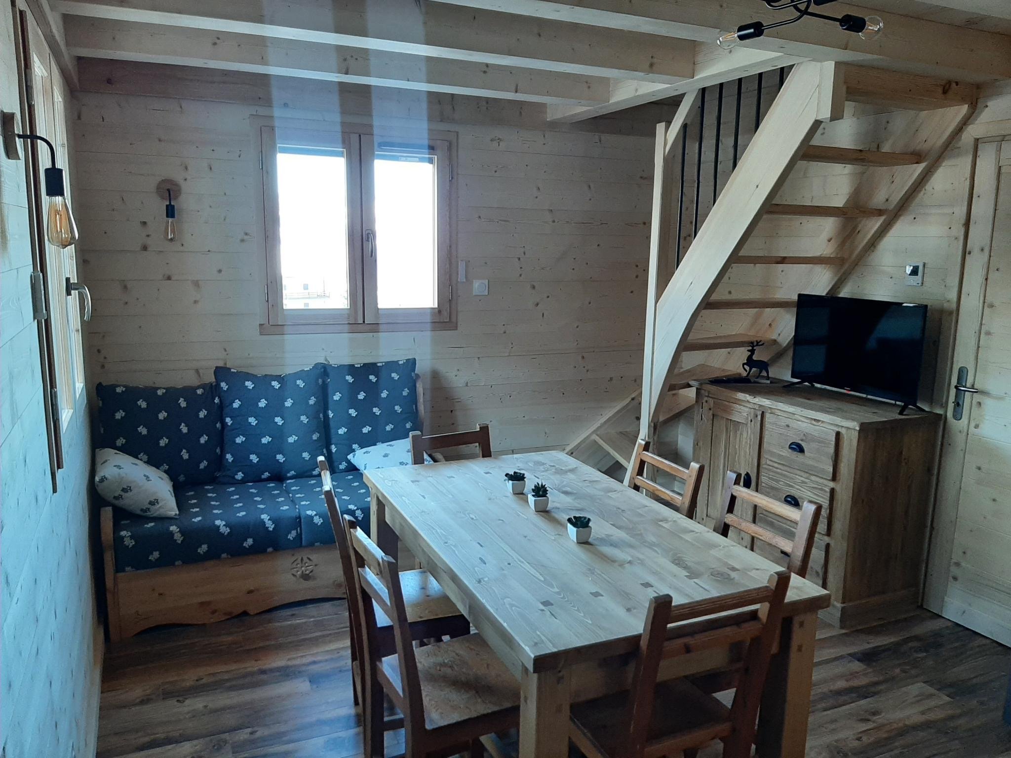 Chalet tout confort- 6 personnes, avec une vue magnifique sur les Ecrins. Surface habitable : 60 m2 sur deux niveaux, avec un garage individuel. Chauffage : au sol + convecteurs - chauffe-eau électrique - double vitrage isolant et volets électriques à toutes les fenêtres. Lit double en 140 cm, lit une place en 80 cm.
