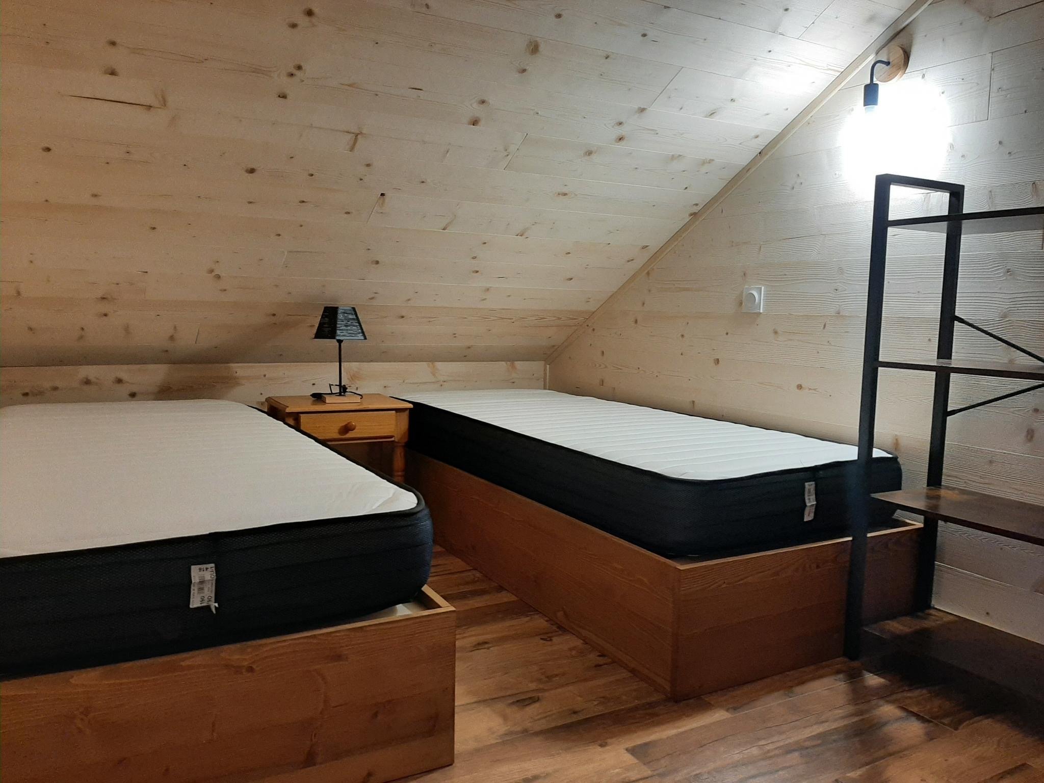 Une grande chambre semi-séparé pour 4 personnes (environ 28m2) (1 lit deux places, 2 lits d'une place)